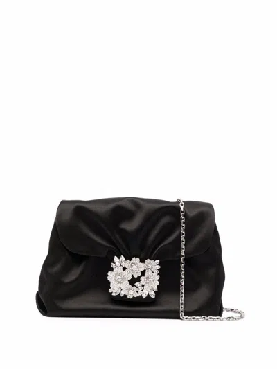 ROGER VIVIER Rv Bouquet Satin Clutch In Black