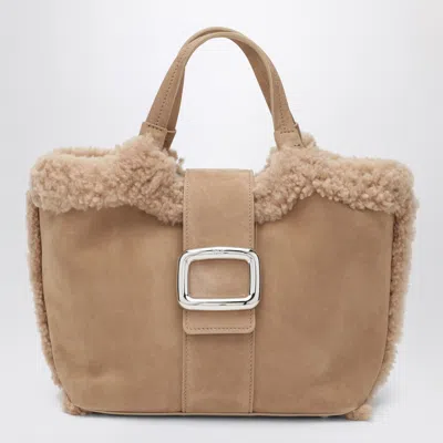 ROGER VIVIER Viv' Choc Mini Leather Shopping Bag In Sand