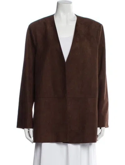 Róhe Evening Jacket Brown Collarless Slit Pockets & Open Front Size not listed, estimated from measurements. Fit: Jackets by Róhe typically fit true to size. Unfortunately, due to restrictions, this item may not be eligible for shipping in all areas. | Róhe Evening Jacket in Brown, Women's XL