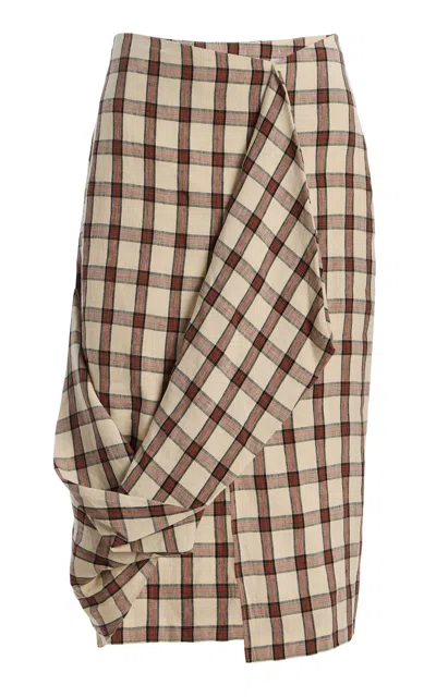 Amsterdam-based atelier Róhe offers exceptionally crafted staples in pair-with-anything neutrals that are as well-constructed as they are timeless.This knee-length skirt has a straight cut made from checked linen with a front panel that drapes along the hem.