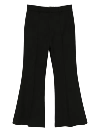 black concealed front button, hook and zip fastening two rear welt pockets belt loops