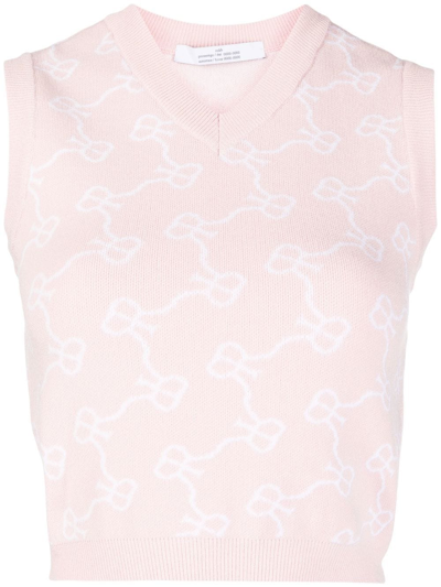 monogram-pattern cropped vest from ROKH featuring rose pink, cloud white, monogram pattern, V-neck, sleeveless and ribbed hem.