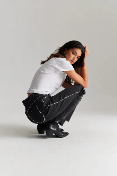 Unleash your inner rock star with the Rolla's x ACDC 90s Relaxed Stud Jeans A mid to high-rise jean that blends a bold fusion of vintage rock attitude and contemporary style Relaxed fit through the seat and thigh with a regular straight leg profile Features our signature back pocket stitching Button fly and vintage inspired details Designed to be worn hiked up high on the waist and belted or mid rise and slouchy Pair with a graphic vintage band tee for that effortless stylish look Made with Rolla's vintage silver hardware