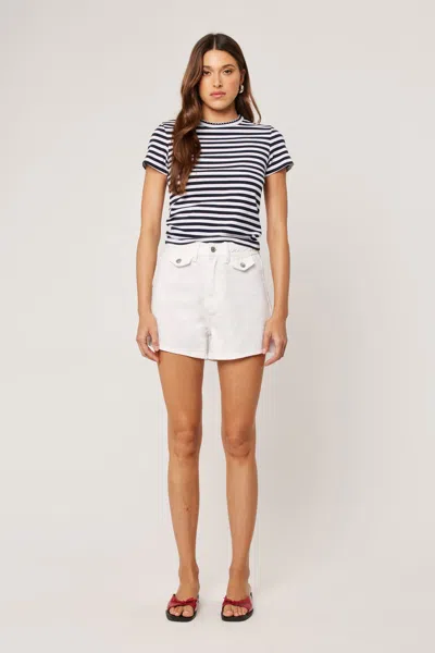 High-rise fit with a relaxed, cheeky silhouette for a flattering fit Made with a raw-cut hem & zip fly Signature Rolla’s flap front pockets and heritage-style trims for a timeless touch Braided detail around the waistband and pockets for a unique touch Made with a lyocell and cotton fabrication which has sustainable qualities Effortless summer staple that blends nostalgic texture with everyday ease Made with in an authentic vintage white for the perfect summer staple