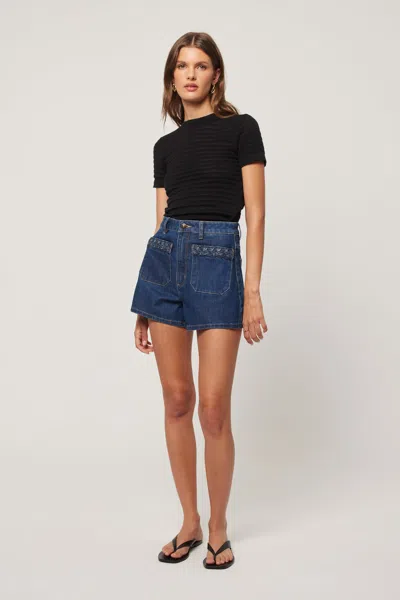 A high rise short with a relaxed cheeky fit Finished hem & zip fly Modest length Rolla's signature pockets & trims Non stretch denim for a true vintage look & feel Will soften and shape to the body with wear Eva Blue is a light blue wash with vintage character