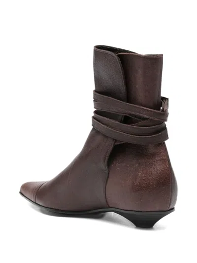 Pre-owned 1990s Leather Ankle Boots In Brown