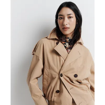A bomber-meets-cropped-trench, crafted from a beautiful twill cotton. Cinched cuffs and waistband create a sculpted silhouette, while the relaxed fit gives it that effortless drape. Made in China Main: 100% Cotton Lining: 100% Polyester Dry clean only Do not bleach Do not tumble dry Do not iron Dry cleanable