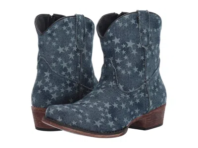 Roper Merica Denim - Women's Boots : Stonewashed Denim/All-Over Star Print : Let your true style standout with pride when you wear the Roper Merica Denim boot! ; Distressed denim upper with an allover classic American star pattern. ; Inside zipper pull allows for on and off. ; Side stitched boot strap for assisted entry. ; Soft leather and textile linings provide a comfortable feel. ; Cushioned textile insole for all-day comfort. ; Single-welt construction. ; Scouring and distressed detail on heel and outsole offers a vintage look. ; Snip toe. ; Stacked heel. ; Durable man-made outsole for added stability. ; Imported. Measurements: ; Heel Height: 1 3 4 in ; Weight: 12.8 oz ; Circumference: 12 1 2 in ; Shaft: 7 1 2 in ; Product measurements were taken using size 9, width M. Please note that measurements may vary by size. | Roper Merica Denim Women's Boots Stonewashed Denim/All-Over Star Print : 9 M, Textile