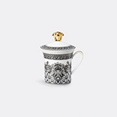 Taken from a limited edition collection of porcelain mugs created to celebrate 30 years of design excellence, this cup by Versace for Rosenthal is a beautiful symbol of the two brands' ongoing collaboration. Like all mugs in the series, this cup features an archival print — here, Donatella Versace's 'Marqueterie' merges the house's signature hallmark of opulence with a contemporary refresh in the shape of a chic black and white contrast. It's all joined by familiar baroque-esque patterns, like filigree, which appear across both the cup and its gold topped lid.