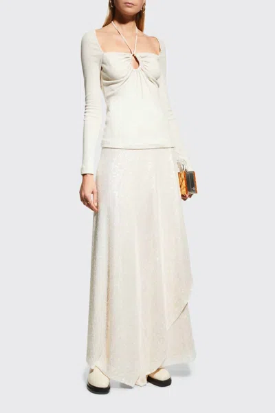 ROSETTA GETTY Ruched Drawstring Cutout Top In Light Grey