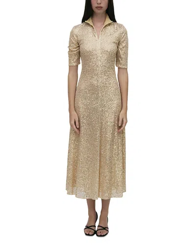 ROSETTA GETTY Sequin Turtleneck Midi Dress In Metallic