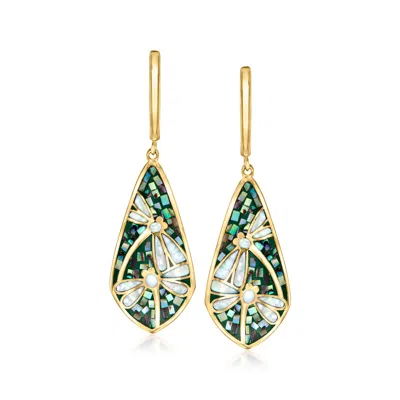 ROSS-SIMONS Mother-of-pearl And Abalone Shell Dragonfly Drop Earrings In 18kt Gold Over Sterling In Green