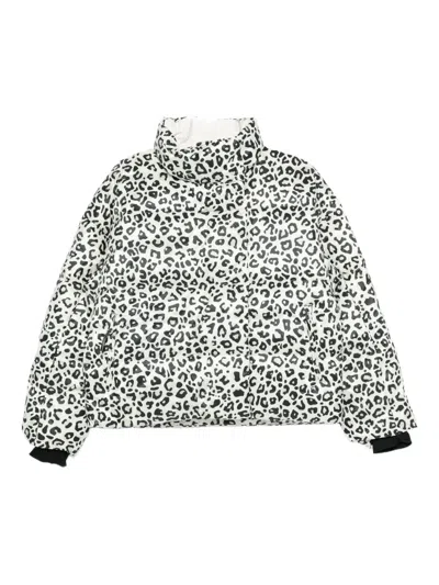 white leopard print high neck long sleeves elasticated cuffs zip fastening