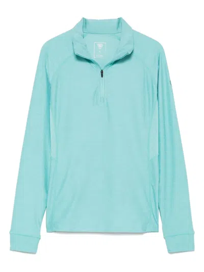 turquoise blue-green half front zip fastening UV protection raised logo detail high neck