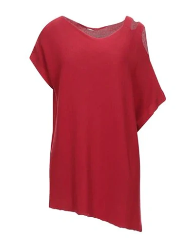 knitted, no appliqués, lightweight knit, wide neckline, basic solid color, short sleeves, no pockets , Color: Red , Size: L