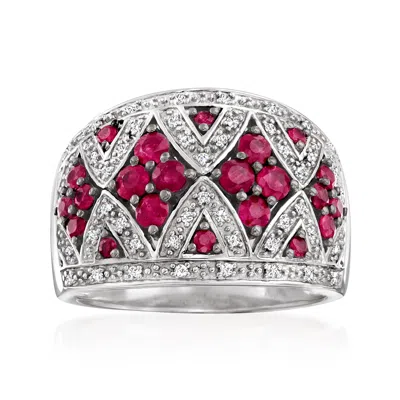 Ross-Simons is the authority on fashionable must-haves. Like a bushel of fresh red berries, this sparkling ruby and diamond dome ring is filled with appeal! It features 1.00 ct. t.w. ruby rounds and.10 ct. t.w. diamonds in a luscious display of sterling silver with black rhodium. 1/2" wide. Diamond and ruby ring. Each Ross-Simons item arrives in a fine jewelry presentation box. Shop Ross-Simons jewelry risk-free as all items include a 30-day, 100% money-back guarantee.Stone InformationGem Type 1 - RubyStone Cut 1 - Good-CutStone Color 1 - RedStone Clarity 1 - RedStone Shape 1 - Round-ShapeStone Creation Method 1 - NaturalStone Treatment Method 1 - Heat-TreatedStone Weight 1 - 1.00 CaratsNumber Of Stones 1 - 22Gem Type 2 - DiamondStone Cut 2 - Good-CutStone Color 2 - H-IStone Clarity 2 - I2Stone Shape 2 - Round-ShapeStone Creation Method 2 - NaturalStone Treatment Method 2 - Not-TreatedStone Weight 2 - 0.10 CaratsNumber Of Stones 2 - 46