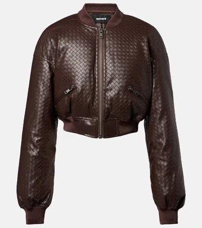 ROTATE BIRGER CHRISTENSEN Brown Cropped Bomber Bomber Jacket With Bomber Collar And Woven Design In Ecoleather Woman