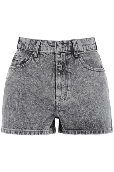 ROTATE BIRGER CHRISTENSEN Crystal Frayed Hem Denim Shorts In Grey