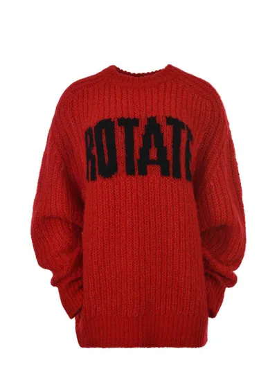 Sweater Rotate made of wool in Red. Ribbed crewneck. Long sleeves. Dropped armholes. Contrasting Rotate lettering logo in Black, front. Ribbed cuffs and bottom. Oversized. 59%Merino Wool, 21%Polyamide, 20%Alpaca Composition: Misto Lana