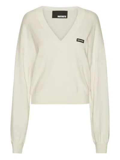 This Knit V-Neck Sweater From Rotate Embodies Cozy Luxury, Made From A Blend Of 95% Certified Merino Wool And 5% Certified Cashmere. The Relaxed Silhouette And Cropped Length Offer A Modern Twist On Knitwear, While Long Sleeves Provide Warmth. A Subtle Logo Patch On The Chest Adds A Refined Branding Touch, Making It Suitable For Both Casual And Chic Occasions.Specifications:- 95% Certified Merino Wool - 5% Certified Cashmere - Care: Wipe With A Soft Cloth - Origin: Made In Italy