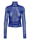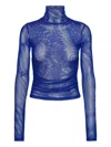 blue mesh ruched detail high neck long sleeves