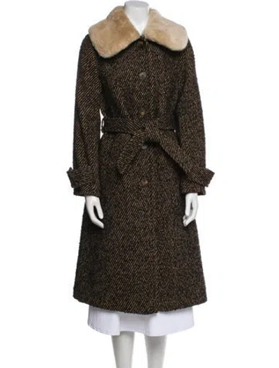 Pre-owned Wool Tweed Pattern Coat In Brown