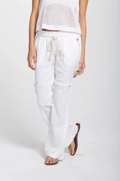 ROXY Oceanside Linen Blend Drawstring Pants In White