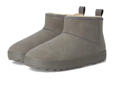 Roxy Pow Booty - Women's Boots : Grey : Get ready to strut your stuff in style wearing the Roxy Pow Boots! Made with chic faux suede upper, these ankle-high boots offer the perfect combination of fashion and function. The cozy polyester lining and insole will keep your feet warm and comfortable all day long. Whether you're running errands or hitting the town, these boots are sure to be your go-to choice. ; Slip-on closure. ; Pull tab on the back. ; Round toes. ; Rubber outsole. ; Imported. Measurements: ; Weight: 15 oz ; Product measurements were taken using size 8, width M. Please note that measurements may vary by size. | Roxy Pow Booty Women's Boots Grey : 9 M, Suede
