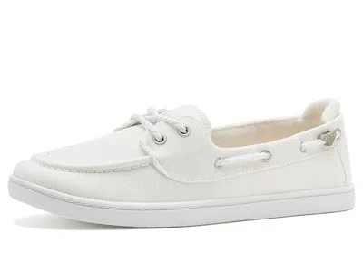 Roxy Sailor - Women's Shoes : Twill White : Accentuate your classic look wearing the Roxy Sailor. Crafted from cotton upper, polyester lining, and cotton insole, this pair of shoes features moc-toe design, slip-on style, tie detailing on the vamp, and brand tag on the side. ; Cotton outsole. ; Imported. | Roxy Sailor Women's Shoes Twill White : 11 M, Cotton