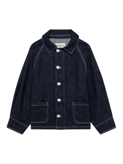 Roy roger's, travail jacket in light rinse denim, blue, travail jacket made of light denim with a dark light rinse wash, characterized by an essential style that recalls the workwear aesthetic reinterpreted in a contemporary key by roy rogers. the model stands out for its clean and versatile line, ideal for completing casual and everyday looks. the garment features contrasting stitching that enhances the structure of the denim, round collar and front closure with contrasting macro buttons. the two flat patch pockets on the front add practicality and character to the design, while the long raglan sleeves with buttoned cuffs guarantee comfort and freedom of movement., light denim with dark light rinse wash, contrasting stitching, round collar, front closure with contrasting macro buttons, two flat patch pockets on the front, long raglan sleeves with buttoned cuffs, regular fit.