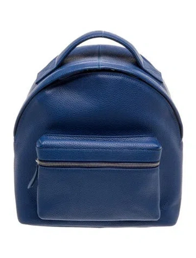 ROYCE New York Backpack Blue & White Leather Silver-Tone Hardware Flat Handle & Dual Adjustable Shoulder Straps Single Exterior Pocket Logo Jacquard Lining & Three Interior Pockets Zip Closure at Top Includes Dust Bag Unfortunately, due to restrictions, this item may not be eligible for shipping in all areas. | ROYCE New York Leather Backpack in Blue/White
