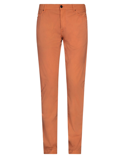 synthetic jersey, brand logo, solid color, mid rise, straight leg, regular fit, button closing, five pockets, stretch , Color: Orange , Size: 34