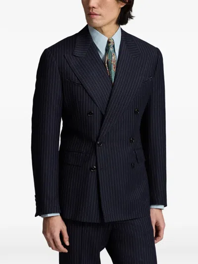 RRL Striped-pattern Double-breasted Suit In Blue