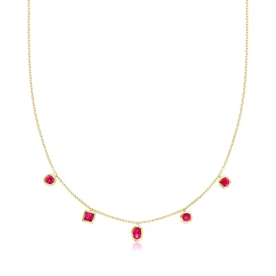 By Ross-simons Multi-shaped Lab-grown Ruby Station Necklace In 18kt Gold Vermeil
