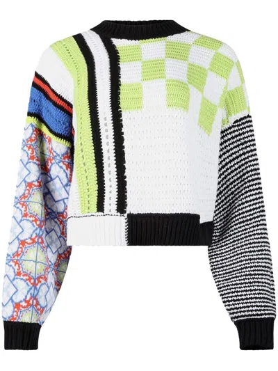 Goncalo multicolour sweater from RtA featuring multicolour, patterned jacquard, ribbed cuffs and hem, round neck and long sleeves.