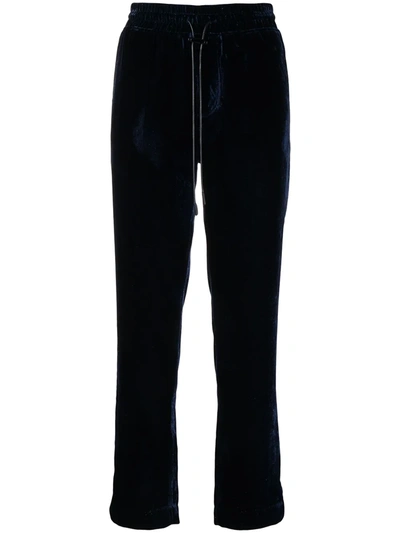 Navy blue velvet-effect pyjama pants from RtA featuring mid-rise, drawstring fastening waist, velvet effect and straight leg.