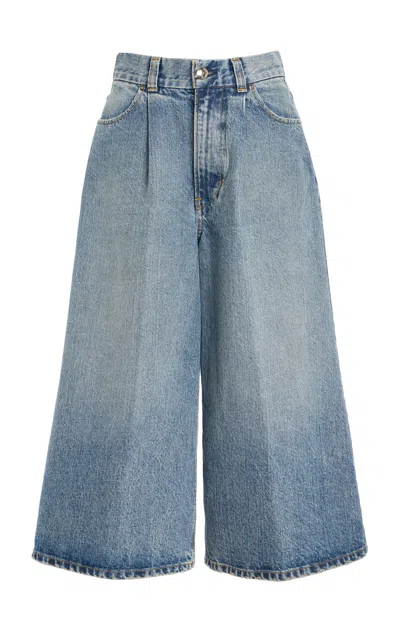 Scottish Gaelic for red; RÙADH (pronounced “roo-ah) is associated with concepts of strength and resilience — much like denim. The NYC-based brand crafts its collections in small batches from ethically sourced materials in organic silhouettes inspired by natural formations of the earth. Cut from pure cotton denim; the Raasay jean is designed with a high-rise waist and a wide; cropped leg in a classic Claude wash for an easy; modern take on everyday denim.