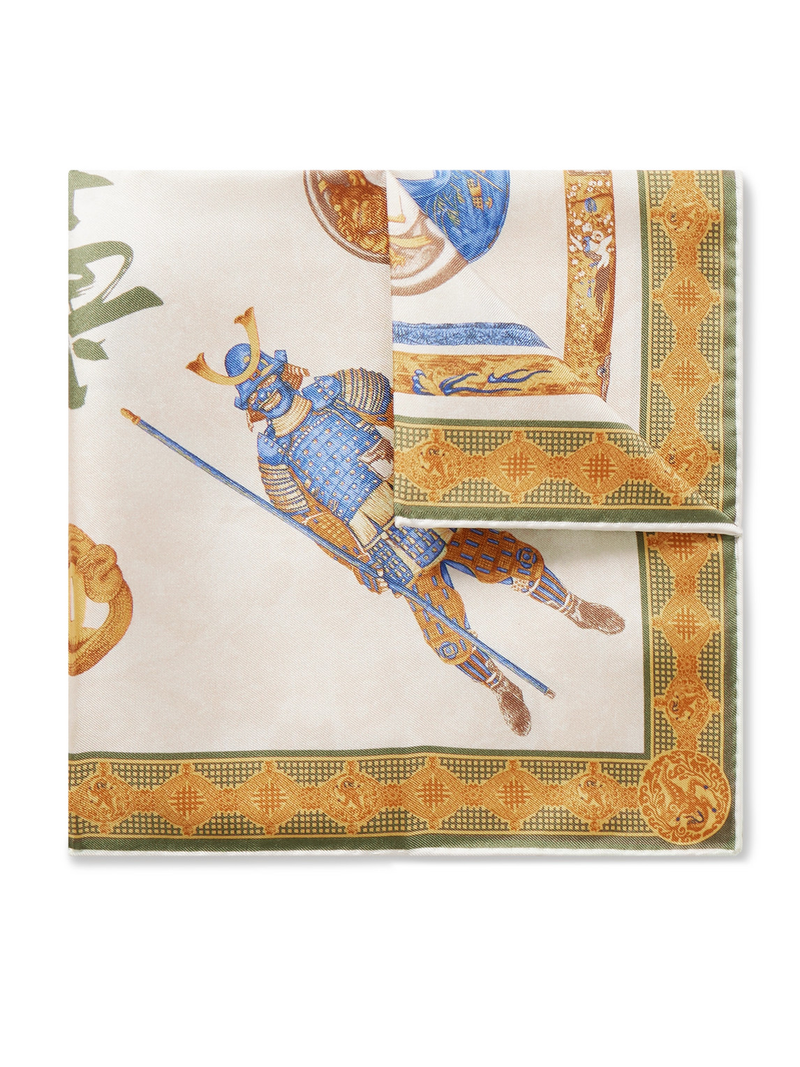 Initially designed to celebrate the opening of Rubinacci's Tokyo store, this 'Samurai' pocket square is printed with the word Bushido , the code of conduct for Japan's historic warrior classes. It's cut from smooth silk-twill and finished with hand-rolled edges.