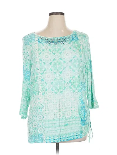 Ruby Rd. 3/4 Sleeve Blouse, Size: 1X. Item Details: Teal, Square Neckline, Women's Tops, Rayon/Spandex