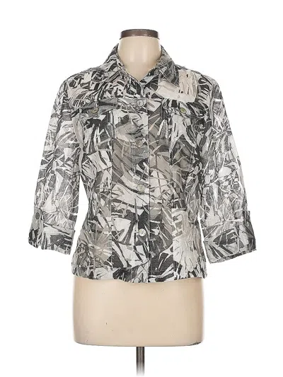 Ruby Rd. 3/4 Sleeve Blouse, Size: 12. Item Details: Silver, Collared Neckline, 3/4 Sleeves, Women's Tops, Rayon/Polyester/Linen
