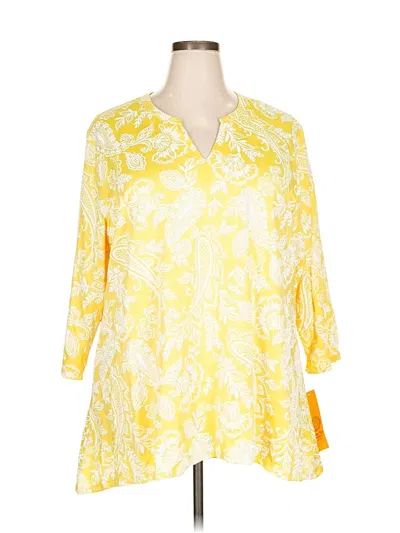 Ruby Rd. Long Sleeve Blouse, Size: 3X. Item Details: Yellow, Collared Neckline, Short Length, 3/4 Sleeve, Women's Tops, Polyester/Spandex