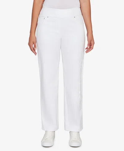 RUBY RD. Petite Embroidered Stovepipe Pull On Jeans In Multi