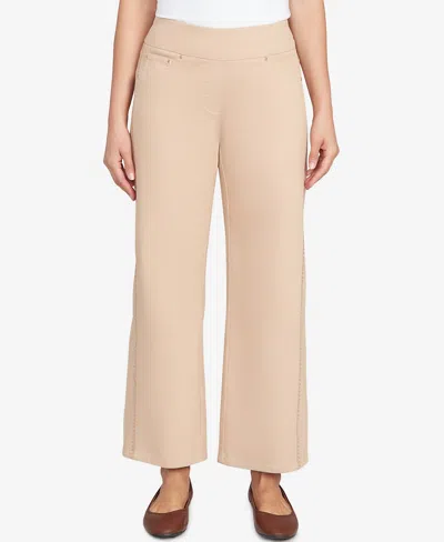 RUBY RD. Petite Embroidered Stretch Pull-on Pants In Nude