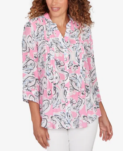 RUBY RD. Petite Paisley Silky Gauze Button Front Top In Multi