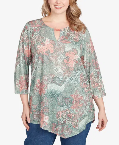 RUBY RD. Plus Size Floral Patchwork Asymmetric Top In Multi