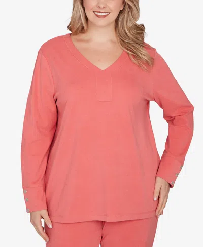 RUBY RD. Plus Size Luxe Rib V-neck Button Accent Knit Top In Orange