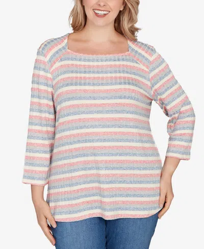 RUBY RD. Plus Size Marled Stripe Envelope Neck Rib Knit Top In Neutral