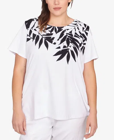 RUBY RD. Plus Size Palm Print Top In White