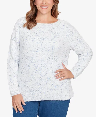 RUBY RD. Plus Size Speckled Chenille Eyelash Sweater In White