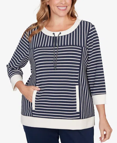 RUBY RD. Plus Size Striped Popover Pocket Top In Multi